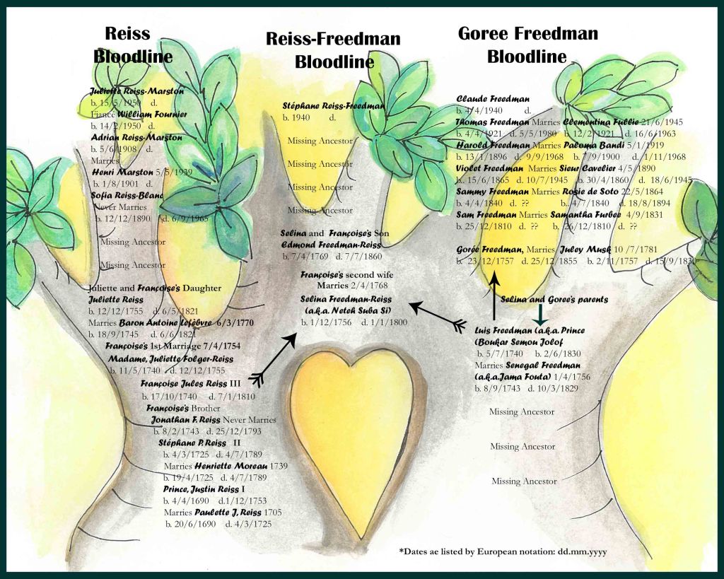 In Mistaken Legacy, Book 1, in the Legends on the Rise Novel Series, Juliette Reiss-Marston inherits a dowry belonging to all Reiss women in their bloodline upon her engagement. Shortly thereafter, Claude Freedman, a distant cousin she had never met contacts Juliette about knowing who the dower is and that he had inherited her ancestor’s memoir that discloses the acquisition during the French colonial slave trade, and her connection to the Freedman family. Claude is a descendant of Luis Freedman, a slave Juliet’s fourth great grandfather, Capetain Françoise Jules Reiss III had freed.